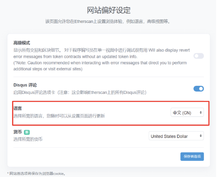 点击"保存首选项"就能更换语言。